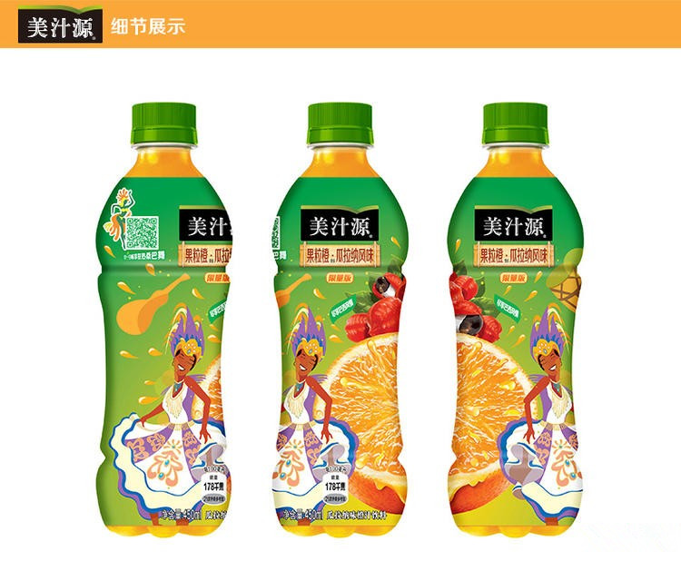 “淳萃”跟美汁源果粒系列比,除了瓶身和視覺有變化之外,值得注意的是“淳萃”的果汁含量比原來提高了許多。果粒橙和爽粒葡萄的果汁含量在 10% 左右,現(xiàn)在的“淳萃”檸檬味含有 30%復(fù)合果汁;橙的果汁含量達(dá)到了 40%。